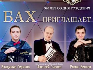 Солисты - Заслуженный артист Московской области, преподаватель РАМ им Гнесиных, солист Коломенской филармонии Алексей Сысоев аккордеон, Лауреаты международных конкурсов Роман Беляев и Владимир Сериков (баян).