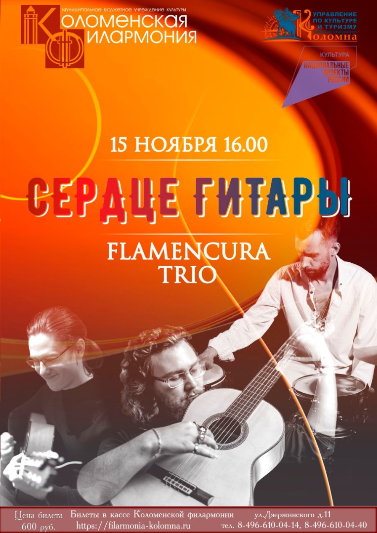 15 ноября в 16:00 ч. в Коломенской филармонии выступит Алексей Стародубцев и «Flamencura Project». Музыканты представят в Коломне новую программу "Сердце Гитары", посвященную одной из самых ярких музыкальных культур мира. Прозвучат композиции с нового альбома "Diapasón", а также музыка с альбомов Алексея Стародубцева, записанных в Испании и России.