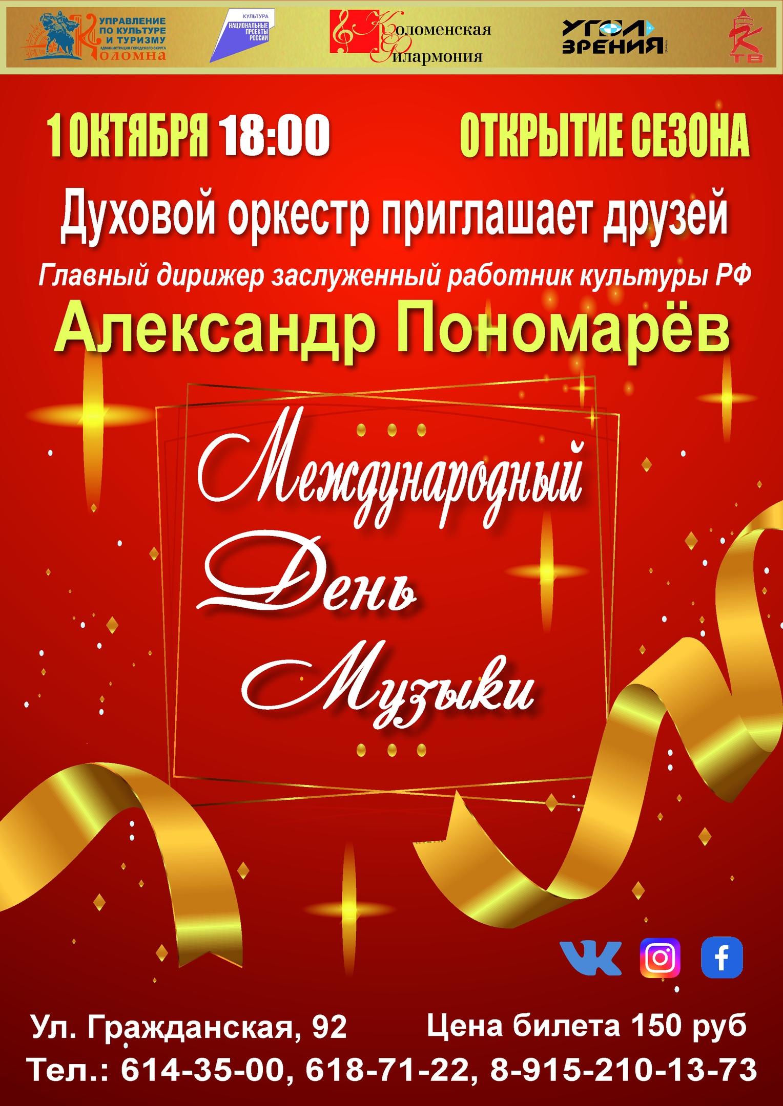 Коломенская филармония приглашает на концерты, посвященный Международному дню музыки.