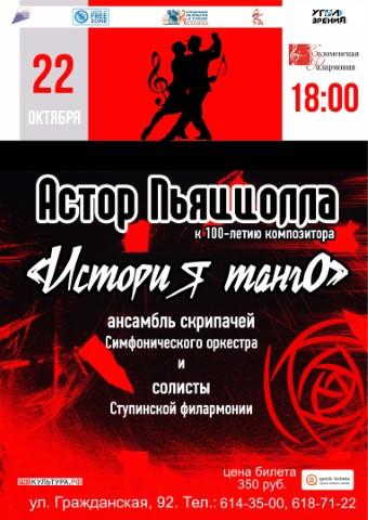 22 октября в 18.00 ч. к 100-летию короля танго Астора Пьяццолла. Концерт ансамбля скрипачей и солистов Ступинской филармонии.