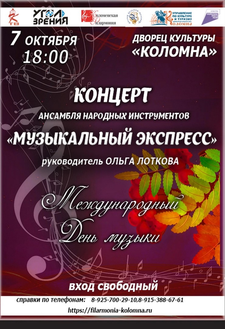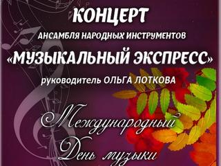 7 октября в 18.00 состоится концерт, посвященный открытию XVIII творческого сезона «Коломенской филармонии», приуроченного Международному Дню музыки. Ансамбль «Музыкальный экспресс» представит новую и очень интересную программу.