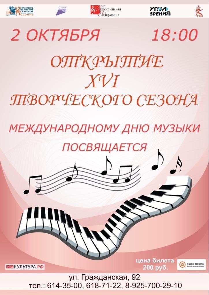 2 октября в концертном зале Коломенской филармонии состоится концерт, посвящённый открытию XVI творческого сезона. В программе примут участи Алексей Сысоев и Павел Ромадин, Юрий Меркулов и Юрий Иванов, а также ансамбль народных инструментов «Музыкальный экспресс».