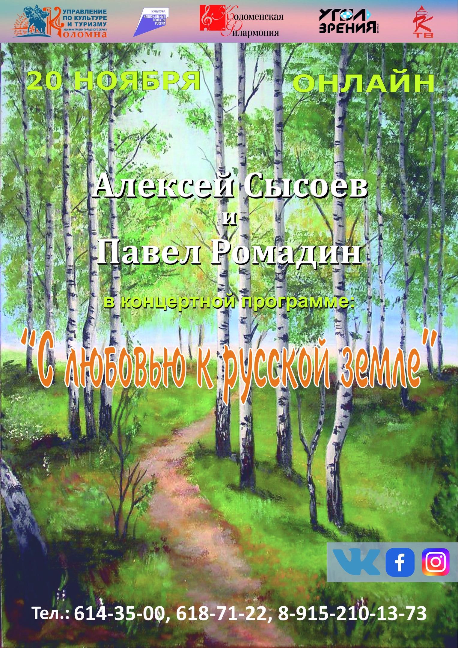 20 ноября артисты Коломенской филармонии Алексей Сысоев (аккордеон) и Павел Ромадин (балалайка) представят концертную онлайн программу «С любовью к русской земле». В программе прозвучит народная инструментальная музыка «от истоков до наших дней».