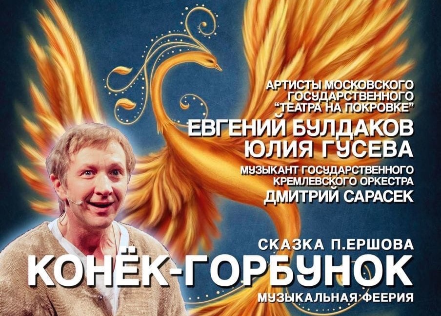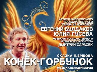 "Конёк-горбунок" в исполнении артистов московского государственного "Театра на Покровке" Евгения Булдакова, Юлии Гусевой и саксофониста Дмитрия Сарасека - это музыкально-драматическая феерия в которую вплетены русский фольклор, рок, джаз, восточные мотивы, степ, индийский танец, что делает сказку современной и динамичной. Спектакль в равной степени будет интересен как детям, так и их родителям. Приходите! Скучно не будет!