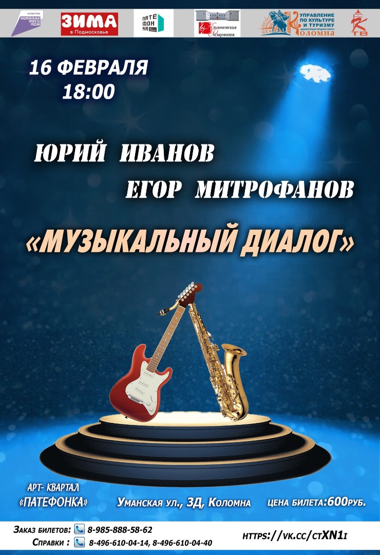 16 февраля в 18.00 ч. "Музыкальный диалог". Вечер инструментальной музыки в исполнении артистов Коломенской филармонии Егора Митрофанова и Юрия Иванова. Каждый зритель в этот вечер услышит что-то свое, почувствует что-то особенное и мысленно перенесется туда, где тепло, уютно и можно хоть на миг забыть о суете наших будней, погрузившись в волшебный мир музыки.
