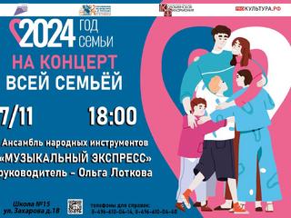 7 ноября в 18: 00 ч. в рамках Всероссийского Года семьи ансамбль народных инструментов "Музыкальный экспресс" (руководитель Ольга Лоткова) порадует слушателей яркой и разнообразной программой, которая придётся по душе всем зрителям, от мала до велика.