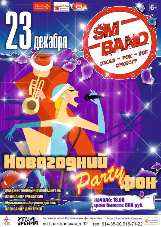23 декабря в 18.00 ч. в Коломенской филармонии состоится традиционный Новогодний музыкальный салон. Для зрителей выступит эстрадно-джазовый оркестр «СМ-Бэнд» и солисты Ступинской филармонии. Музыканты поздравят всех присутствующих с наступающим Новым 2023 годом. Вас ждут популярные новогодние мелодии, любимые песни, музыкальные подарки, хорошее настроение и неожиданные сюрпризы!