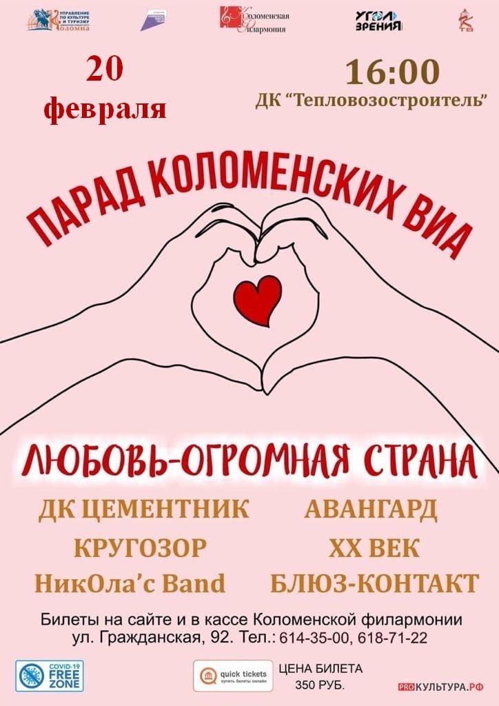 20 февраля в 16.00 ч. в ДК "Тепловозостроитель" состоится традиционный ПАРАД КОЛОМЕНСКИХ ВИА!!!