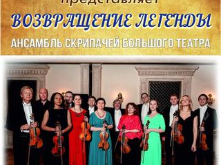 14 февраля 18.00 ч. Коломенская филармония приглашает на концерт ансамбля скрипачей Большого театра России. Коллектив выступит с программа "Возвращение легенды".
