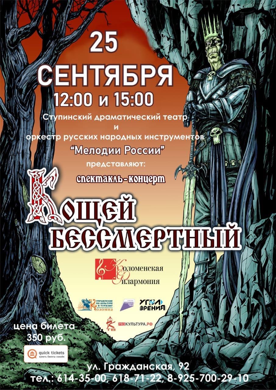 25 сентября на сцене Коломенской филармонии состоится музыкальный спектакль-сказка для всей семьи «Кощей бессмертный».