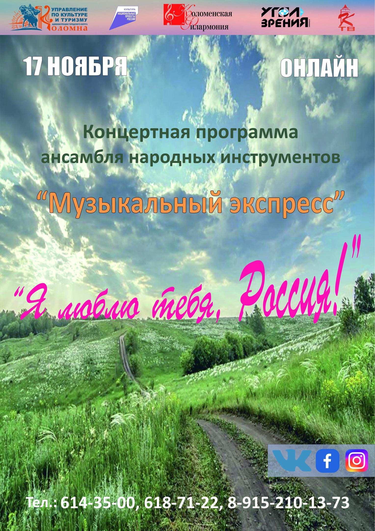 17 ноября Коломенская филармония приглашает на концертную онлайн программу ансамбля народных инструментов «Музыкальный экспресс» – «Я люблю тебя, Россия!». В программе принимают участие артисты Коломенской филармонии: Алексей Сысоев (аккордеон), Павел Ромадин (балалайка), Юрий Меркулов (вокал).