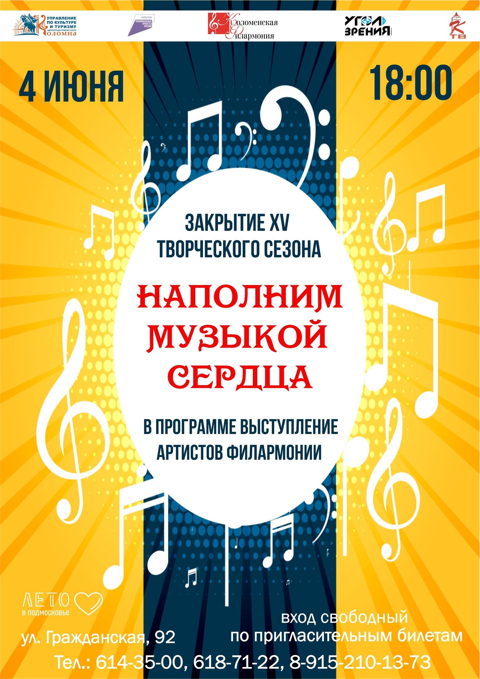 4 июня в 18.00 Коломенская филармония приглашает вас на закрытие 15 творческого сезона.