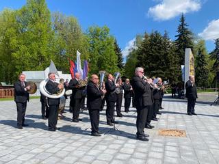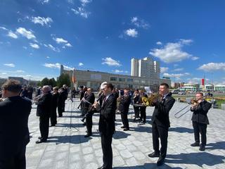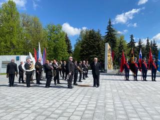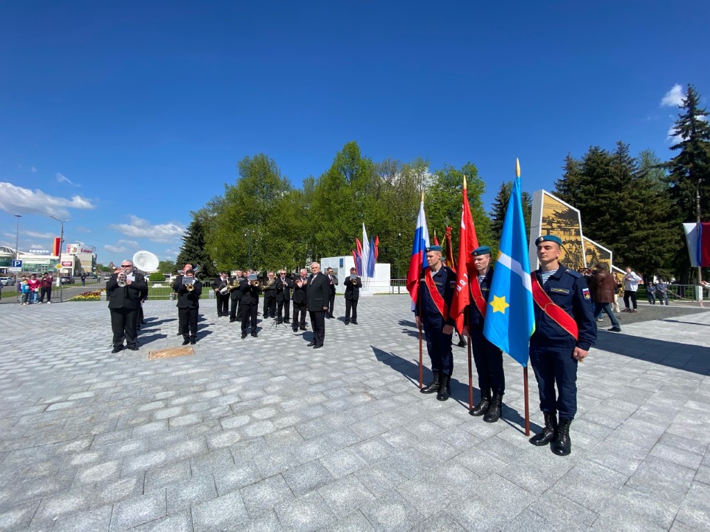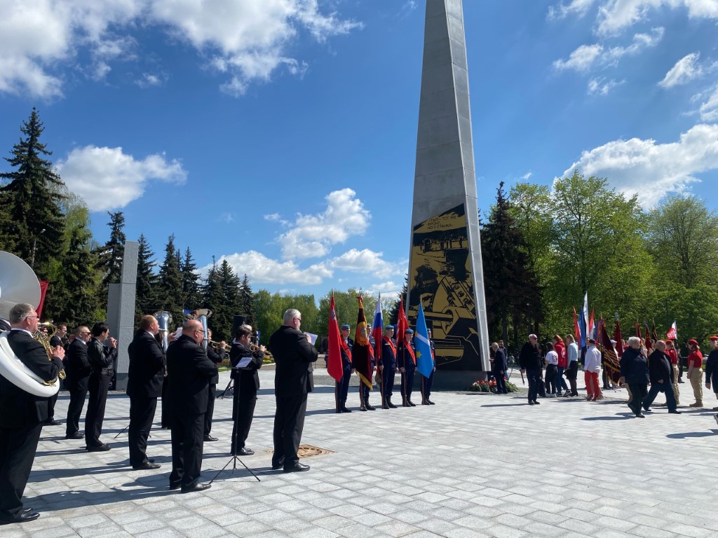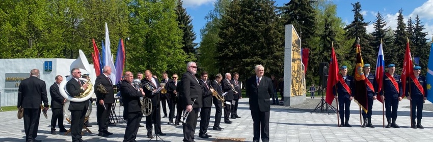 В Мемориальном парке состоялось возложение цветов к стеле «Город трудовой доблести». В мероприятии принял участие Духовой оркестр Коломенской филармонии, главный дирижер заслуженный работник культуры РФ Александр Пономарев.