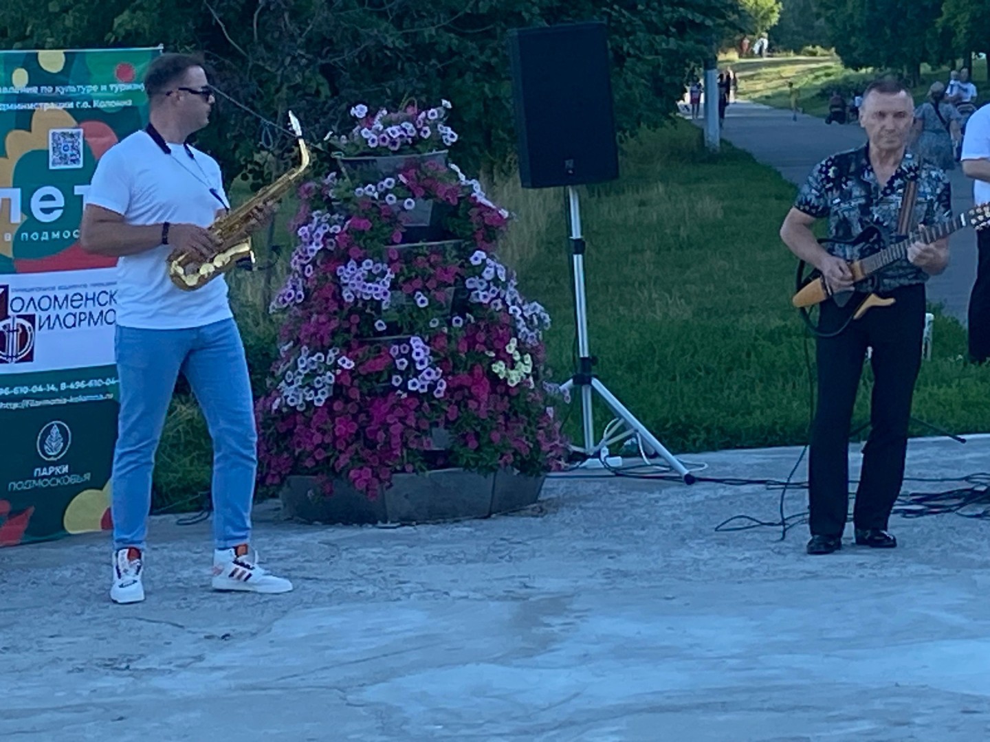 Артисты Коломенской филармонии радовали своим творчеством многочисленных зрительней. Алексей Сысоев, Юрий Иванов, Егор Митрофанов и Юрий Меркулов исполнили популярные композиции, под которые можно было насладиться тихим летним вечером у реки.