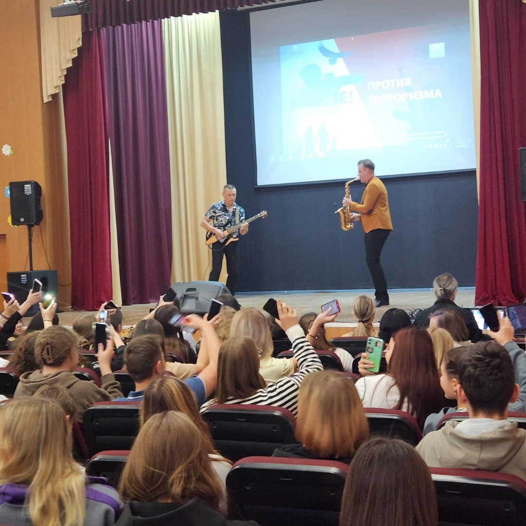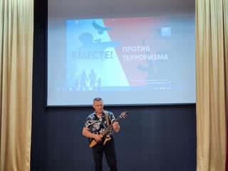 Мероприятие прошло в рамках Всероссийской акции «День солидарности борьбы с терроризмом». Для студентов Коломенского Аграрного колледжа выступили артисты Коломенской филармонии Юрий Меркулов, Юрий Иванов, Егор Митрофанов и приглашенная солистка Алена Лунич.