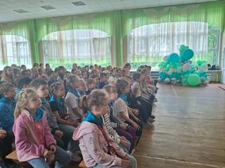 Для юных зрителей выступил ансамбль народных инструментов "Музыкальный экспресс" руководитель Ольга Лоткова. Солистка Алёна Лунич. Темой патриотизма был пронизан весь концерт. Ребята с интересом слушали песни военных лет, пели вместе с артистами.