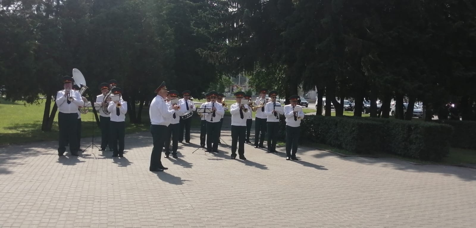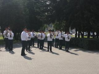Торжественные звуки Духового оркестра Коломенской филармонии сопровождали мероприятие. Главный дирижер, заслуженный работник культуры РФ Александр Пономарев.