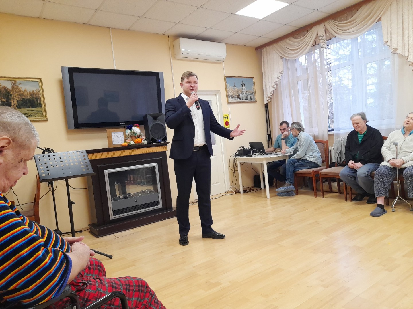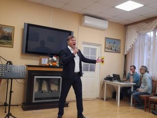 Проживающие стационарного отделения смогли услышать и увидеть невероятное выступление солиста Коломенской филармонии Владимира Лютикова. Его голос – это нечто особенное, он звучал так чисто и проникновенно, что никого не оставил равнодушным, тронув до глубины души. А любимые песни советской эпохи, которые исполнил артист, вызвали бурю положительных эмоций и теплых воспоминаний. Мы от всей души благодарим Коломенскую филармонию за этот чудесный подарок для наших подопечных!