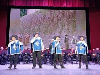 Духовой оркестр Коломенской филармонии под руководством Главного дирижёра, заслуженного работника культуры РФ Александра Пономарёва, исполнил сочинения выдающихся композиторов Исаака Осиповича и Максима Исааковича Дунаевских. 2025 год знаменателен для этой музыкальной семьи: 125-летие со дня рождения Исаака Осиповича и 80-летие Максима Исааковича. Концертная программа дала возможность зрителям насладиться уникальным песенным наследием отца и сына в ярких оркестровых аранжировках.