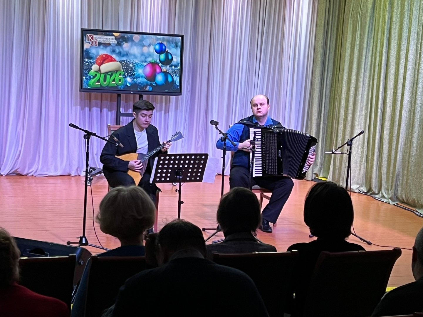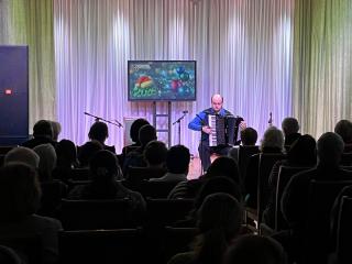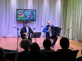 Программа прозвучала в исполнении заслуженного артиста Московской области Алексея Сысоева (аккордеон) и лауреата международных конкурсов Виктора Новикова (балалайка).
