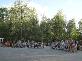 Музыканты играли с большим энтузиазмом и профессионализмом. Каждый номер вызывал бурные аплодисменты зрителей. Атмосфера была теплой и дружелюбной, все наслаждались музыкой и общением друг с другом.