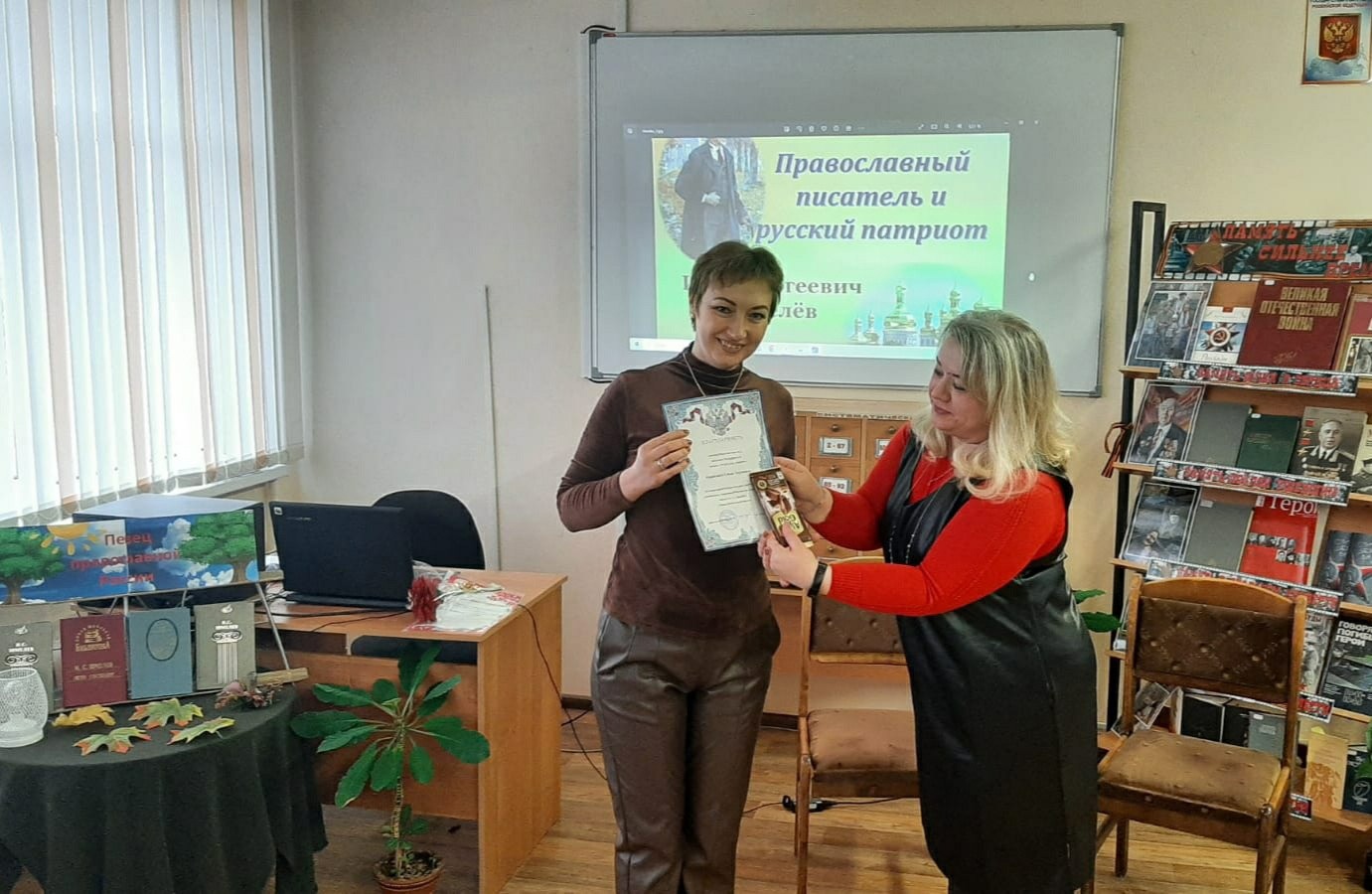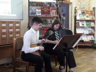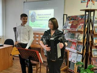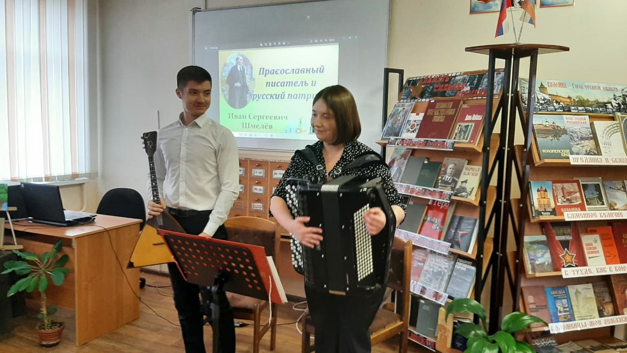 31 октября в школьной библиотеке МБОУ СОШ 15, благодаря участию артистов Коломенской филармонии Павловой Марии (баян) и Новикова Виктора (балалайка), а также художественного руководителя Коломенской филармонии Фомушкина Олега Владимировича, состоялась литературно- музыкальная композиция "Певец православной России", посвященная творчеству Ивана Сергеевича Шмелева, а также 150- летию со дня его рождения.
