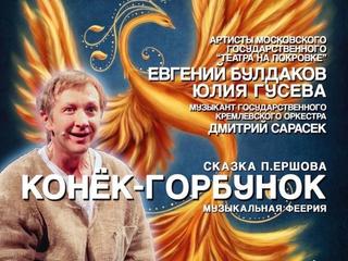 Эта сказка русского поэта и драматурга Петра Ершова знакома нам с самого раннего детства. В исполнении артистов московского государственного «Театра на Покровке» Евгения Булдакова, Юлии Гусевой и саксофониста Дмитрия Сарасека «Конёк-горбунок» превращается в музыкально-драматическую феерию, в которую вплетены русский фольклор, рок, джаз, восточные мотивы, степ и даже индийский танец. Спектакль в равной степени будет интересен как детям, так и их родителям.