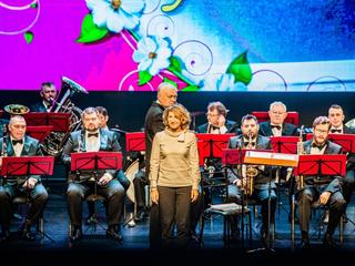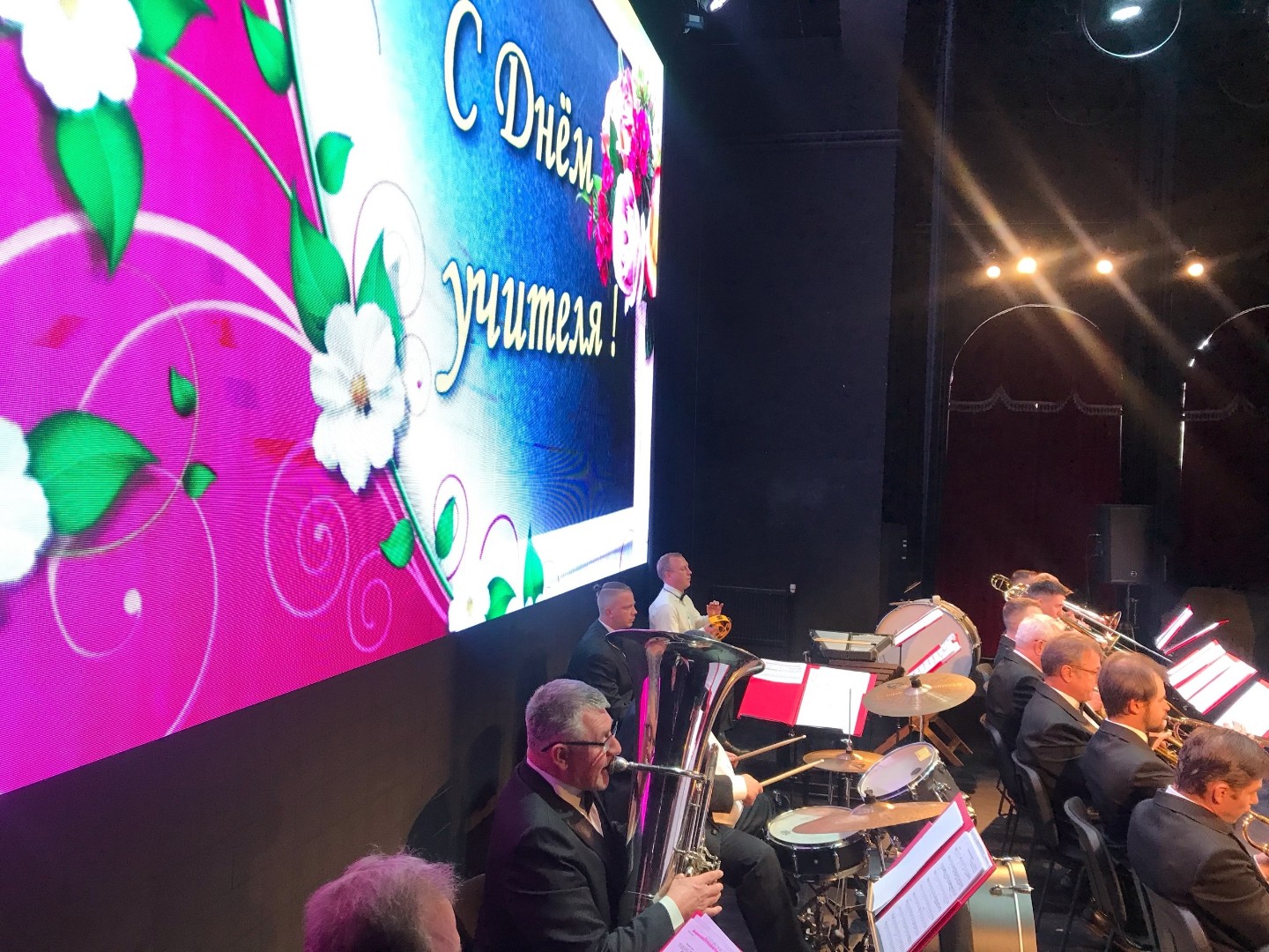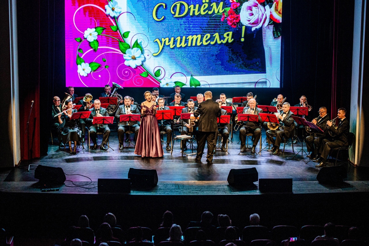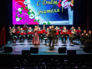 5 октября Духовой оркестр Коломенской филармонии, под управлением главного дирижёра заслуженного работника культуры РФ Александра Пономарева, поздравил педагогов школ искусств с их профессиональным праздником - Днём учителя! Со сцены прозвучала гениальная музыка Сергея Рахманинова и Имре Кальмана. Солисты - руководитель и режиссер музыкально-драматического театра ДК им. Г.Конина, г. о.Егорьевск Александр Дорогов и актриса музыкально-драматического театра ДК им. Г.Конина, г. о. Егорьевск Ирина Шелехова.