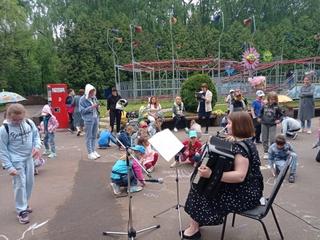 1 июня в День защиты детей коллектив Коломенской филармонии принял участие в городском празднике, который назывался "Город профессий". Тематическая программа "Профессия- музыкант" познакомила ребят с ярким миром музыкального искусства. Юные зрители слушали музыку, пели, играли и рисовали под музыкальное сопровождение артистки филармонии Марии Павловой.
