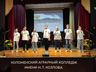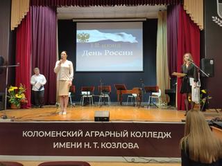 10 июня в преддверии Дня России Коломенская филармония подарила праздничную программу для студентов и преподавателей Аграрного колледжа, в исполнении ансамбля народных инструментов "Музыкальный экспресс", руководитель Ольга Лоткова. Солист Юрий Меркулов. Ведущий Олег Фомушкин. Почётный гость мероприятия - депутат Московской областной Думы Екатерина Александровна Лобышева.