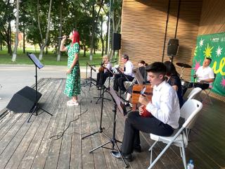11 июля на главной сцене парка культуры и отдыха «Парк Мира» состоялся концерт ансамбля народных инструментов «Музыкальный экспресс», руководитель Ольга Лоткова. Солисты ансамбля Алёна Лунич и Алексей Васяев. В программе прозвучали произведения советских авторов и обработки русских народных песен.
