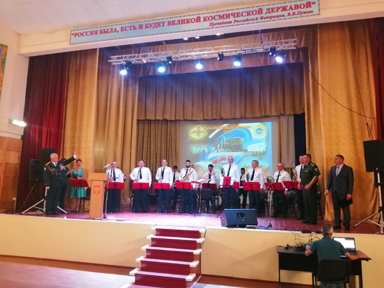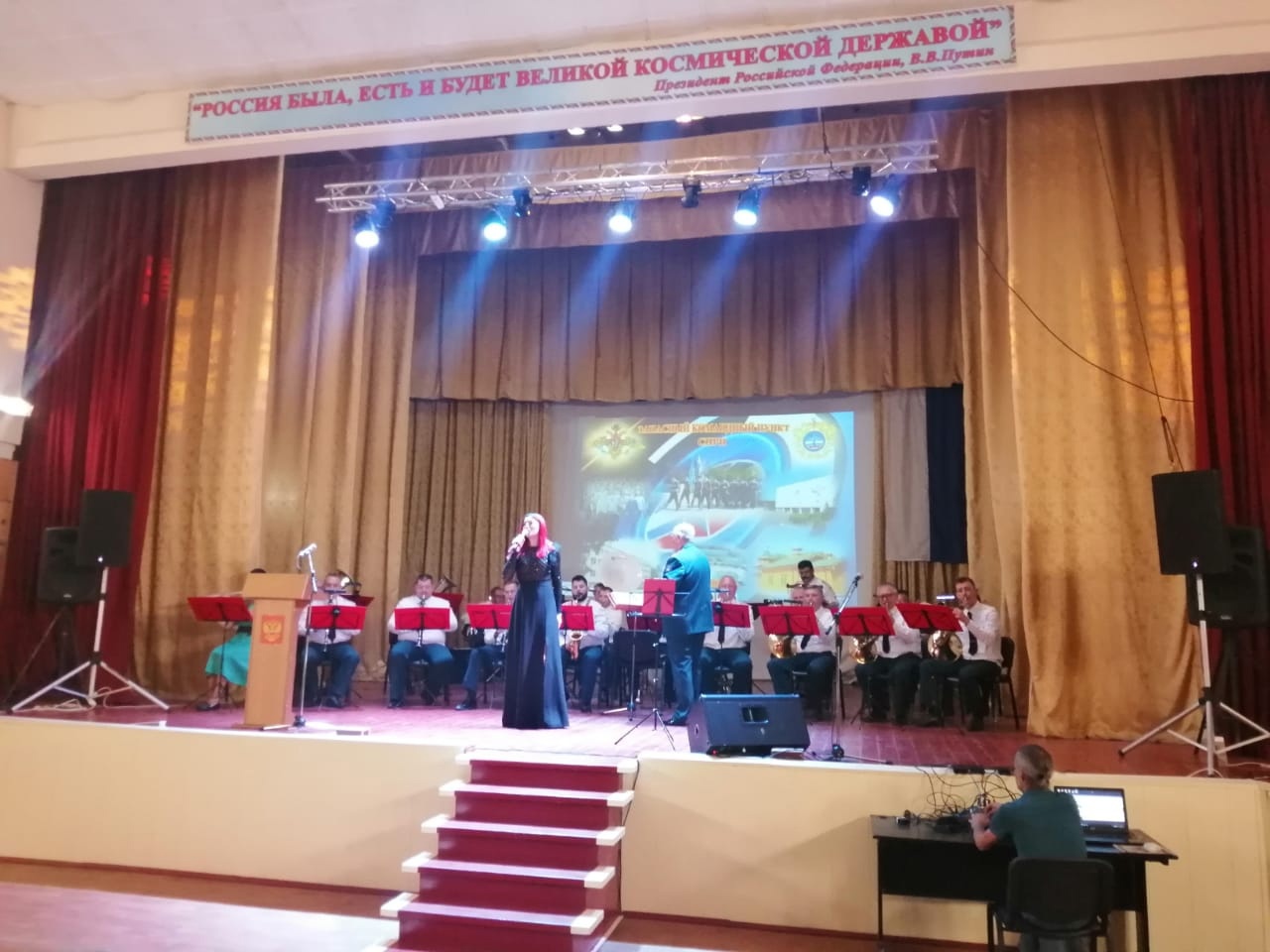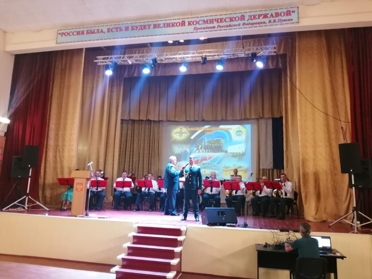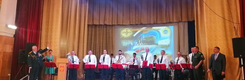 В исполнении оркестра прозвучали патриотические произведения, песни на тему героизма и мужества наших солдат и офицеров. Солисты оркестра Юрий Меркулов, Алёна Лунич, Сергей Кошпаев, Денис Бабкин.