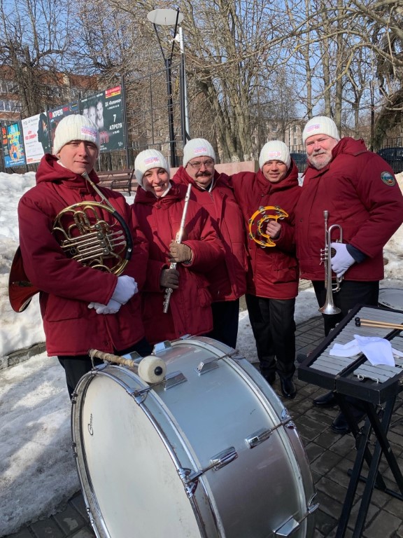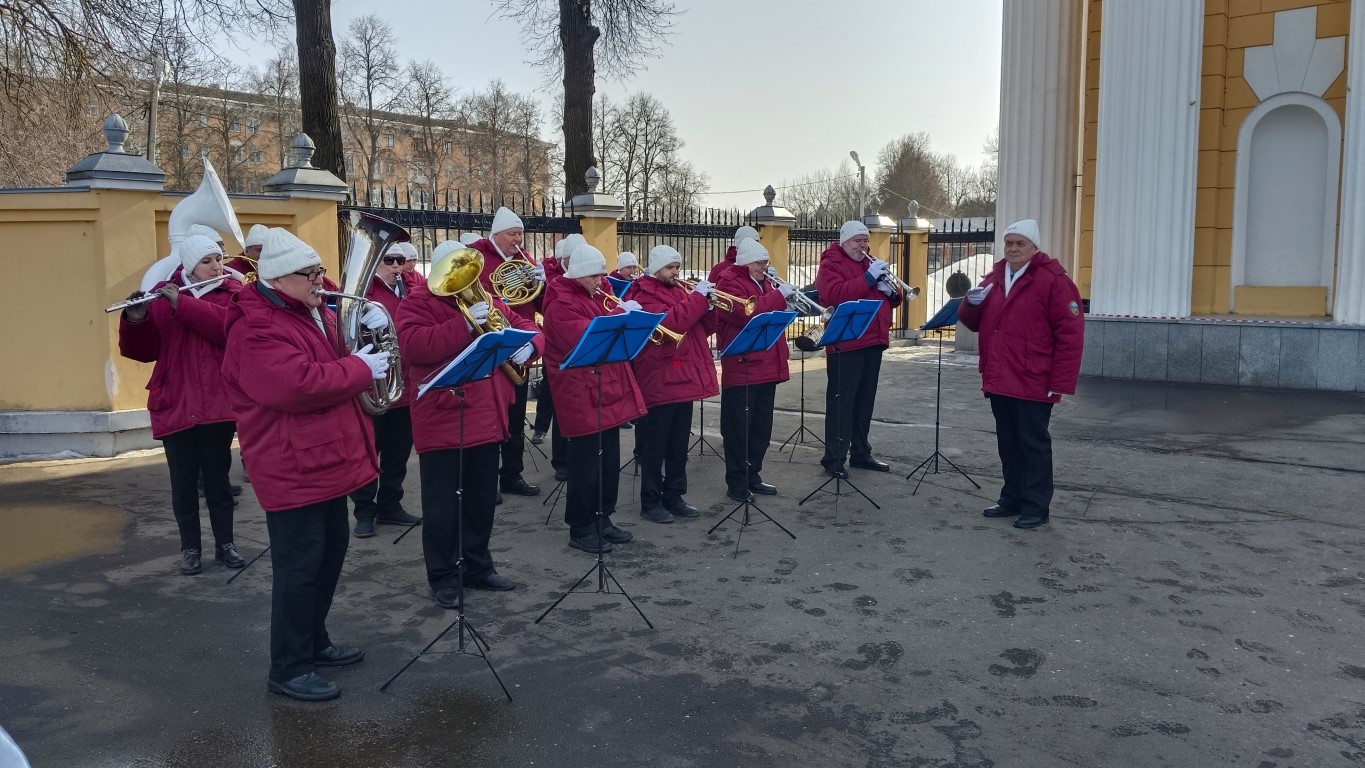 17 марта Духовой оркестр Коломенской филармонии, под управлением главного дирижера, заслуженного работника культуры РФ Александра Пономорева, выступил с концертной программой на территории Г.о. Коломна.