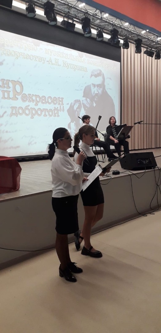 26 сентября 2023 года для учащихся 8-х классов МБОУ СОШ №15, ул. Захарова, д.15 состоялся Лекторий "Мир прекрасен добротой" по творчеству А.И. Куприна. Лекторий по художественно-эстетическому воспитанию школьников прошел в рамках Музыкального проекта социального партнерства МБУК «Коломенская филармония» и МБУ ДПО УМЦ «Коломна» «ЧИТАЕМ С МУЗЫКОЙ».