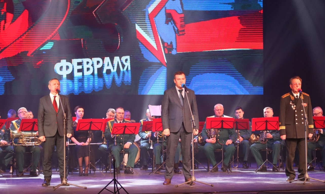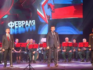 22 февраля в ДК «Коломна» состоялось городское мероприятие, посвящённое Дню Защитника Отечества. Торжественная часть концерта сопровождалась Духовым оркестром Коломенской филармонии, под управлением заслуженного работника культуры РФ Александра Пономарева.