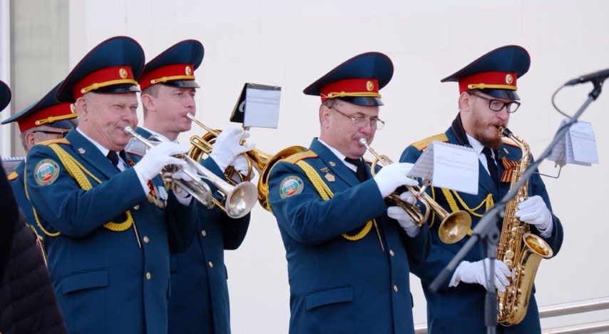 В исполнении сводного детского хора прозвучал Гимн Российской Федерации и песня Альберта Арутюнова на слова Вадима Семернина «Победа» в сопровождении духового оркестра Коломенской филармонии под управлением главного дирижёра, заслуженного работника культуры РФ А.В.Пономарёва.