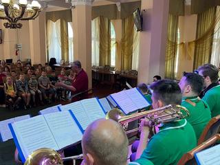 9 июня юные зрители из лагеря дневного пребывания при школе №12 посетили музыкально-познавательную программу "Мультпанорама". Музыкальное путешествие в мир мультипликации ребятам подарил Духовой оркестр Коломенской филармонии, под управлением главного дирижера, заслуженного работника культуры РФ Александра Пономарева. Наши зрители слушали музыку, отвечали на вопросы, пели песни из любимых мультфильмов и даже дирижировали оркестром! Если и вы хотите познакомится с нашим коллективом и окунуться в прекрасный мир музыки, приходите к нам в гости!