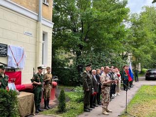 В день памяти и скорби Духовой оркестр Коломенской филарминиии принял участие в открытии мемориальной доски одного из семи полных кавалеров ордена Славы Владимира Ивановича Лысикова. На доме, где жил отважный разведчик, теперь появилась мемориальная доска.