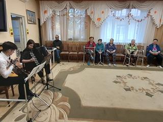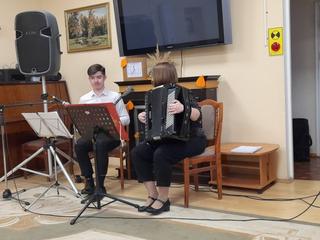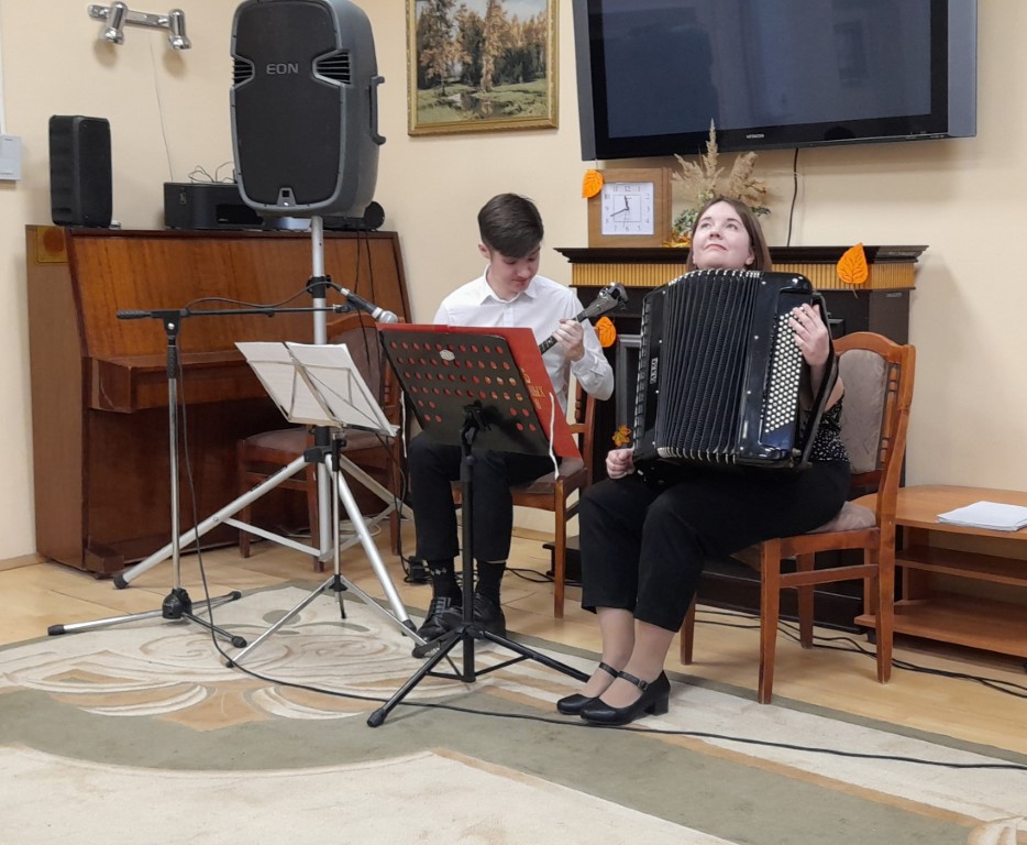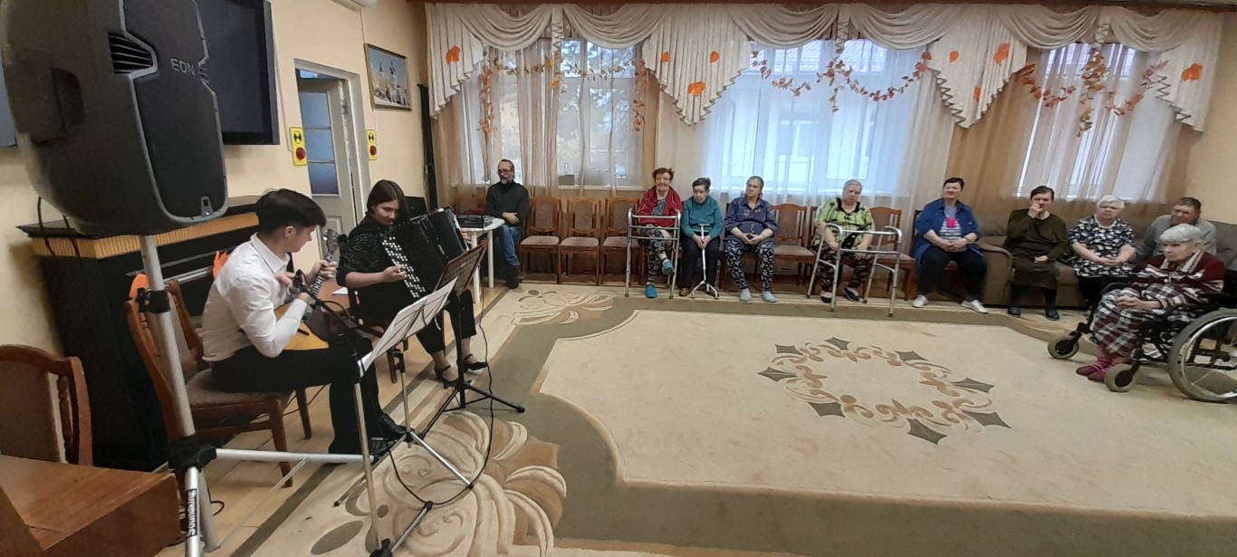 18 октября в доме-интернате для престарелых и инвалидов "ГБУСО МО КЦСОиР "Коломенский" зрители наслаждались живой музыкой, которую исполняли музыканты Коломенской филармонии. Звучали композиции разных авторов. Присутствующие в зале получили истинное наслаждение от виртуозной игры наших гостей, дуэта - Марии Павловой и Виктора Новикова.
