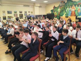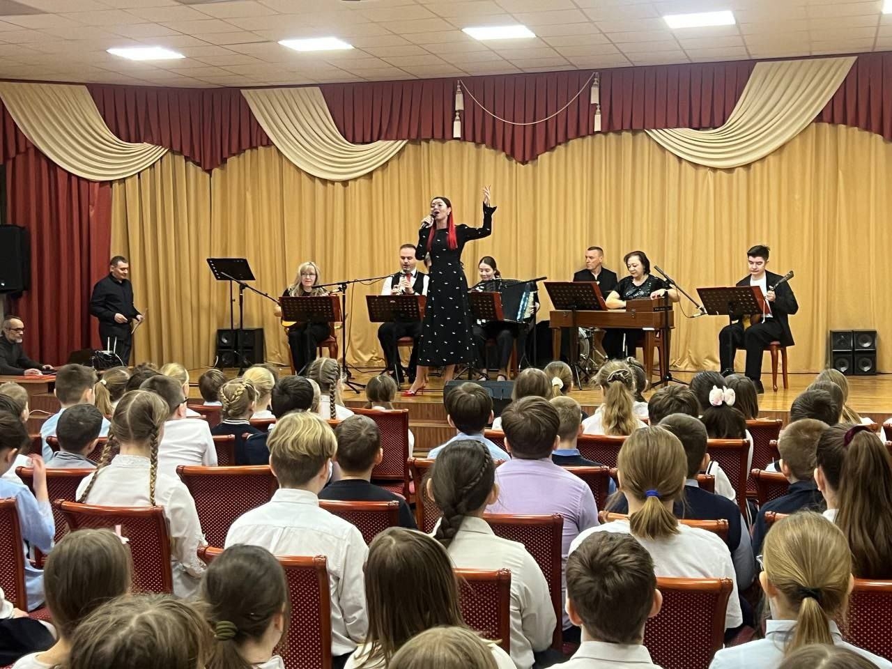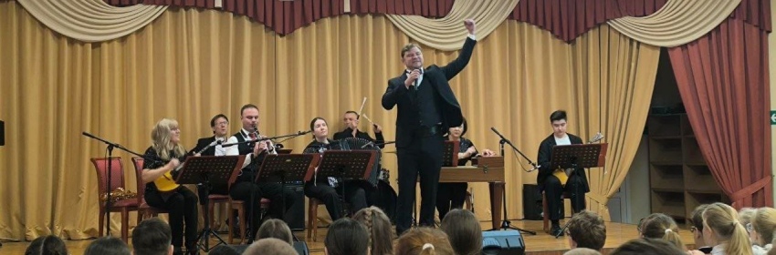 Сегодня в МБОУ СОШ № 15 (здание 1) для обучающихся 3х и 4х классов педагог-библиотекарь Кривощапова И.Н. совместно с КОЛОМЕНСКОЙ ФИЛАРМОНИЕЙ (директор Зубенина Н.А.) ансамбль народных инструментов «МУЗЫКАЛЬНЫЙ ЭКСПРЕСС», худож.рук. Фомушкин О.В. и солисты, лауреаты всероссийских и международных конкурсов, Алена Лунич и Владимир Лютиков провели музыкально-патриотическое мероприятие посвященное Году народов России и приуроченное к празднованию Дню защитника Отечества «От героев былых времен».