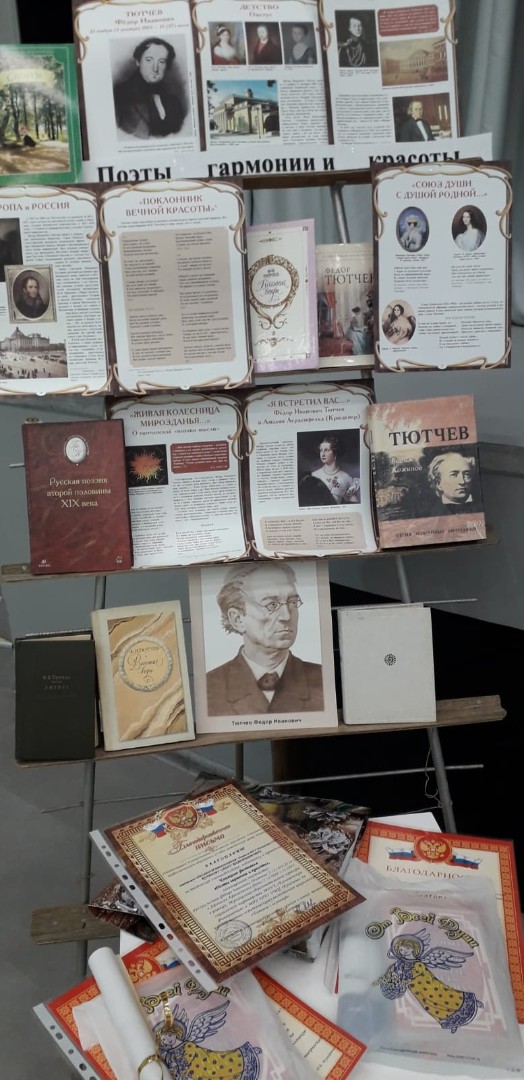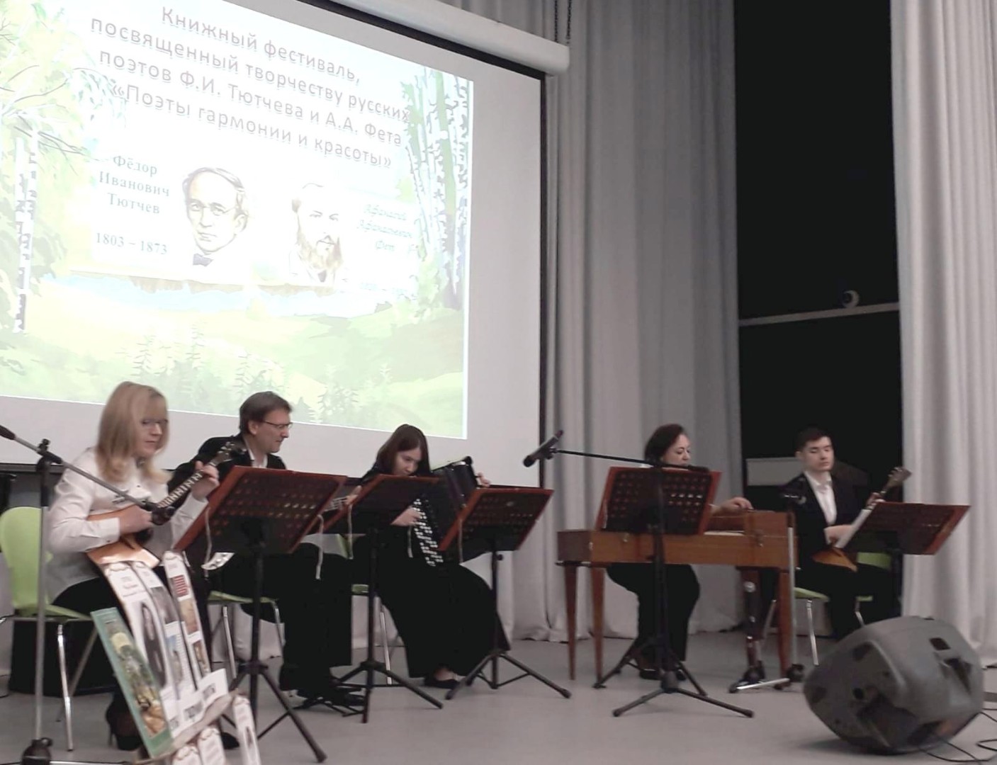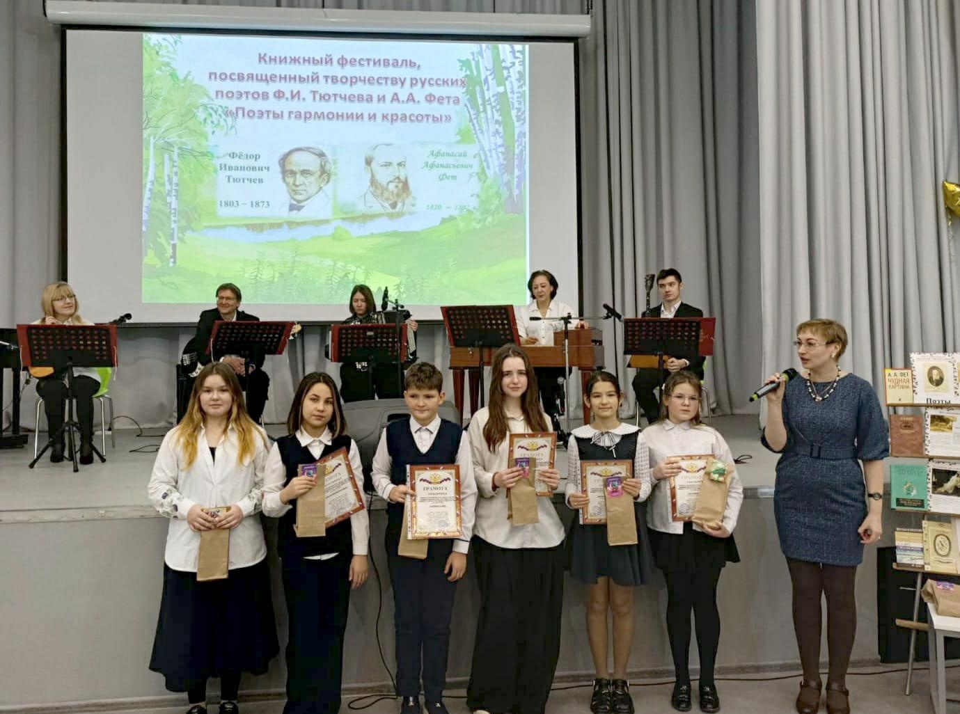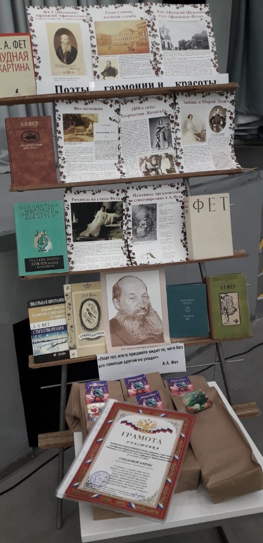 На фестивале работала выставка художественных произведений о творчестве поэтов, оформленная заведующей Информационно- библиотечного центра Крупновой Ольгой Владимировной, транслировались видеофильмы о жизни и творчестве Фета и Тютчева, ребята с удовольствием читали стихи наизусть и философские поэмы из книг, представленных на выставке.