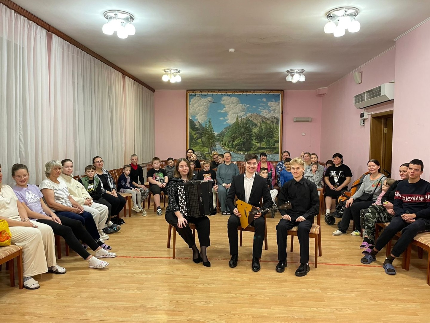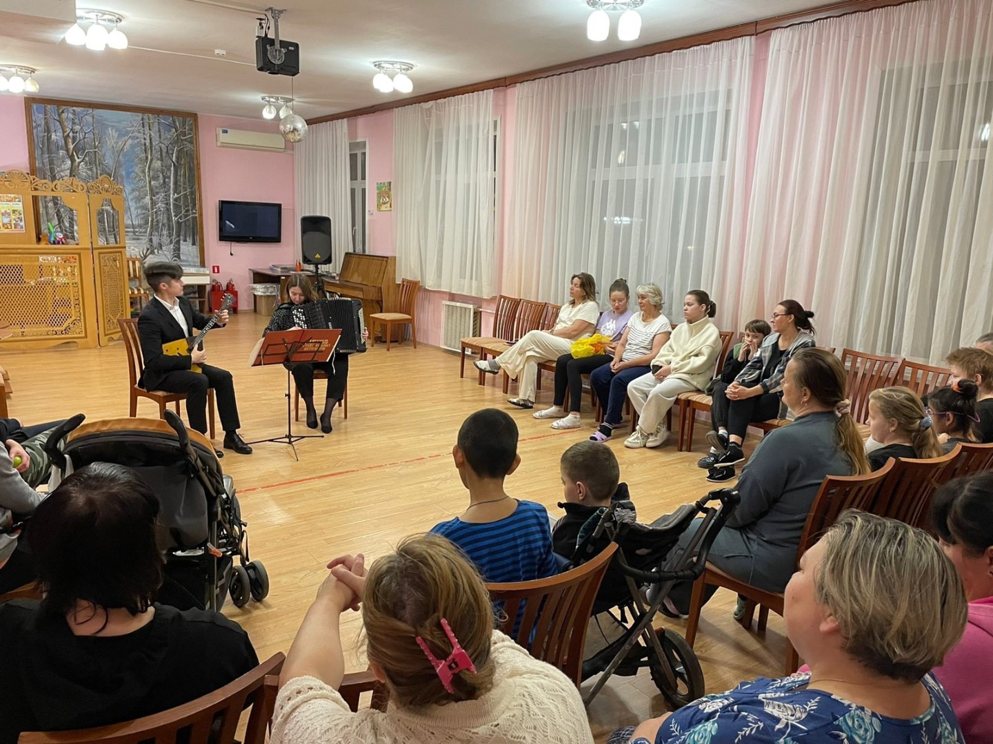 26 ноября артисты Коломенской филармонии Мария Павлова (баян) и Виктор Новиков (балалайка) выступили с познавательной программой "Музыкальная шкатулка", для детей и родителей из реабилитационного центра «Коломенский». Гостем программы стал студент I МОМК Владимир Костриков (гитара).