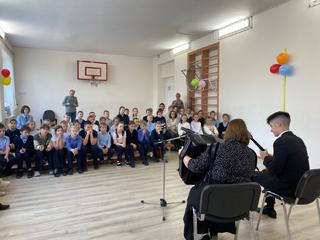 29 октября артисты Коломенской филармонии Мария Павлова (баян) и Виктор Новиков (балалайка) выступили с познавательной программой "Музыкальная шкатулка". Юные зрители из МБОУ СОШ 21 познакомились с народными инструментами, слушали повествования об устройстве баяна и балалайки, и даже сами попробовали поиграть на них.