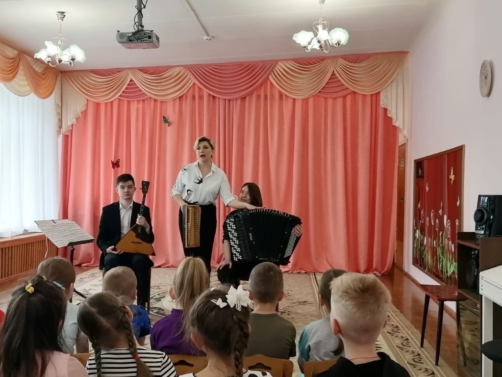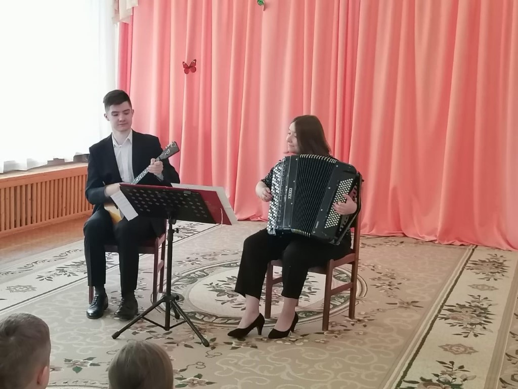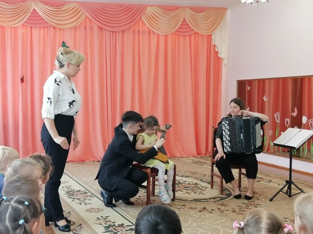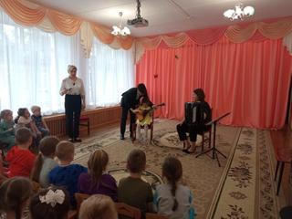 26 апреля артисты Коломенской филармонии Мария Павлова (баян) и Виктор Новиков (балалайка) выступили с познавательной программой "Музыкальная шкатулка". Юные зрители из МБДОУ детский сад N46 "Орленок" познакомились с народными инструментами, слушали повествования об устройстве баяна и балалайки, и даже сами попробовали поиграть на них.