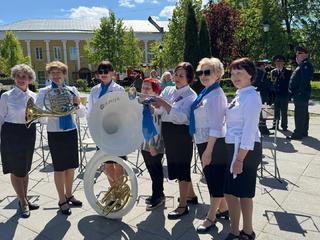 6 мая в сквере им. В.А. Зайцева состоялось праздничное мероприятие "Одна на всех Великая Победа". Торжественные звуки Духового оркестра украсили это яркое событие. Главный дирижер Духового оркестра заслуженные работник культуры РФ Александр Пономарёв. Гостями праздника стали участники Губернаторской программы "Активное долголетие".