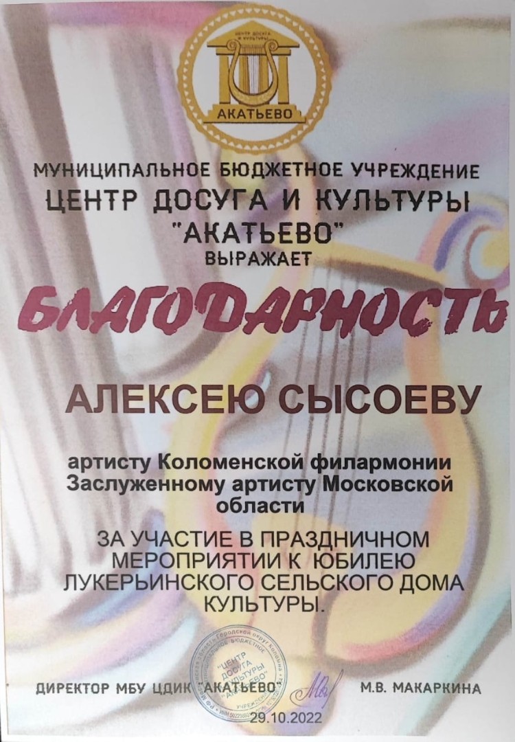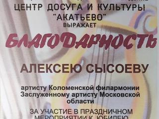 29 октября состоялось праздничное мероприятие "В кругу друзей", посвященное 50-летию Дома культуры в селе Лукерьино. С концертными номерами выступил артист Коломенской филармонии, заслуженный артист Московской области Алексей Сысоев.
