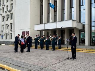 5 мая был дан старт праздничным мероприятиям, которые посвящены Великому Дню Победы. Под торжественные фанфары Духового оркестра, над знанием администрации, подняли Государственный флаг Российской Федерации и копию Замени Победы.