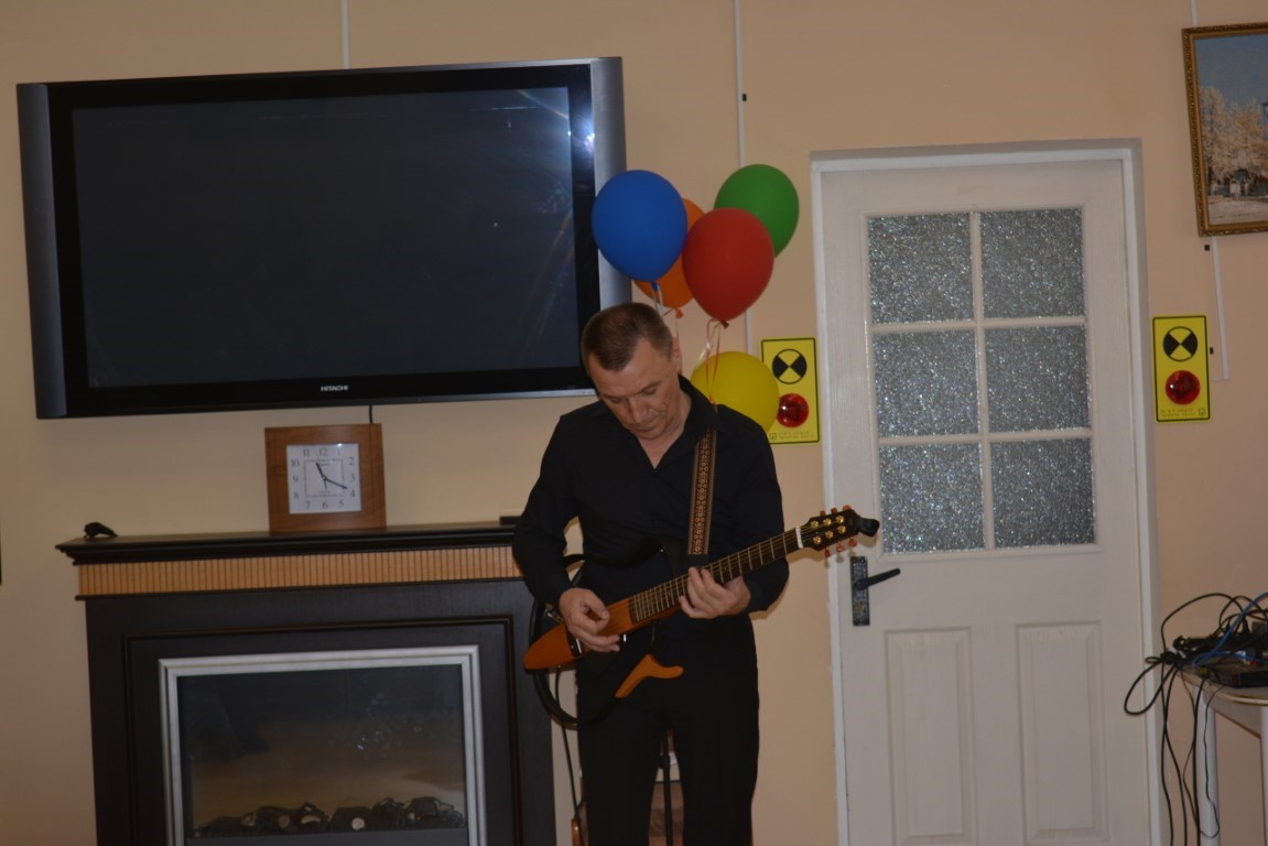 В исполнении Юрия Меркулова звучали песни Победы, хорошо знакомые и любимые нашими подопечными- "Катюша", "Смуглянка", "День Победы",которые исполняли все вместе. Инструментальный аккомпанемент гитары Юрия Иванова очень красиво звучал и радовал наших зрителей.