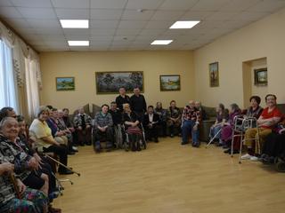 2 мая в стационарном отделении дома-интерната для престарелых и инвалидов "ГБУСО МО КЦСОиР "Коломенский" состоялся предпраздничный концерт артистов "Коломенской филармонии", посвященный 9 мая - Великому Дню Победы.