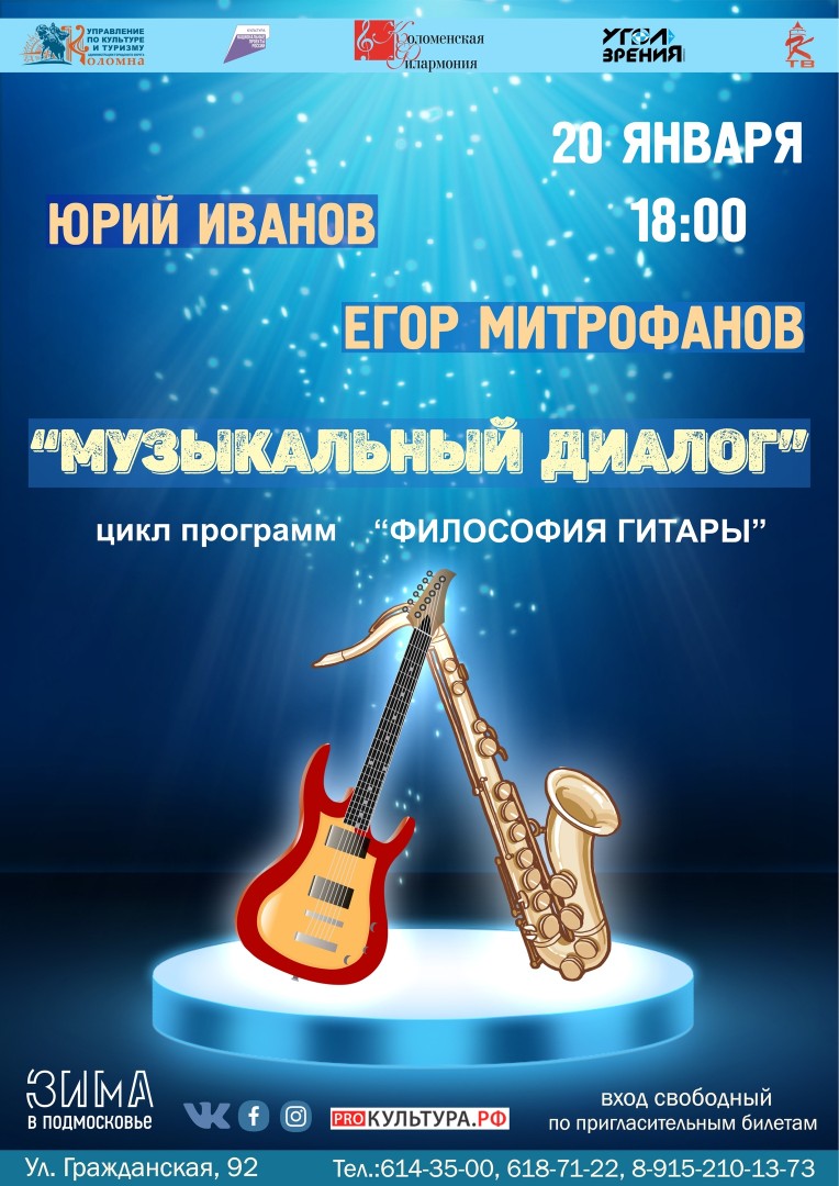 Коломенская филармония продолжает цикл программ «Философия гитары» и 20 января в 18.00 приглашает на очередную встречу, которая будет проходить в необычном формате – «Музыкальный диалог» саксофона и гитары.